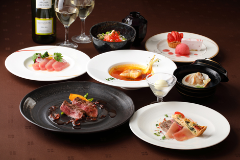 ・牛フィレ肉のグリル 赤ワインソース エシャロットの香り ・蟹とイクラのご飯とお吸い物 ・苺のクリスタルジュレ |